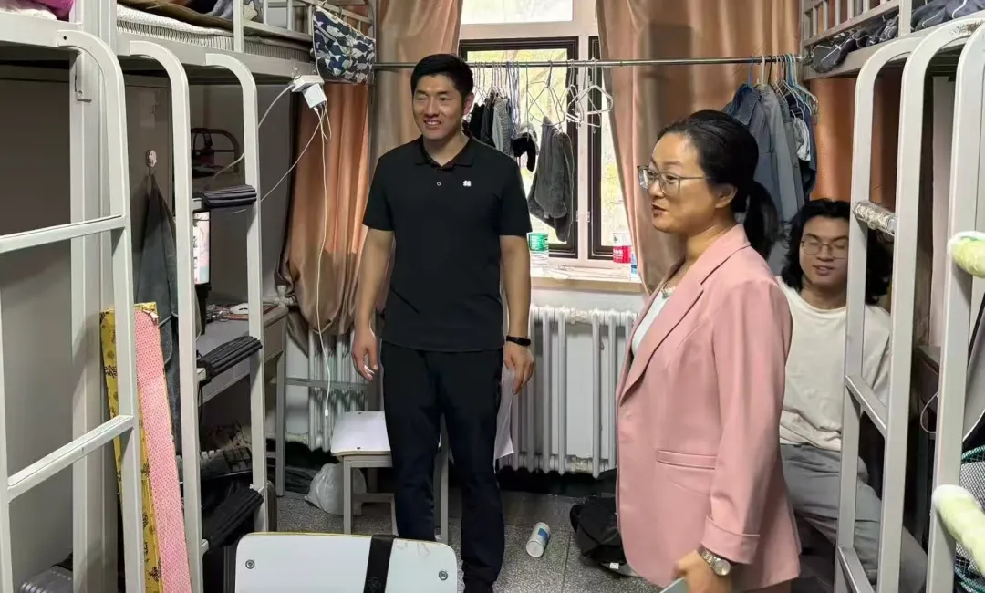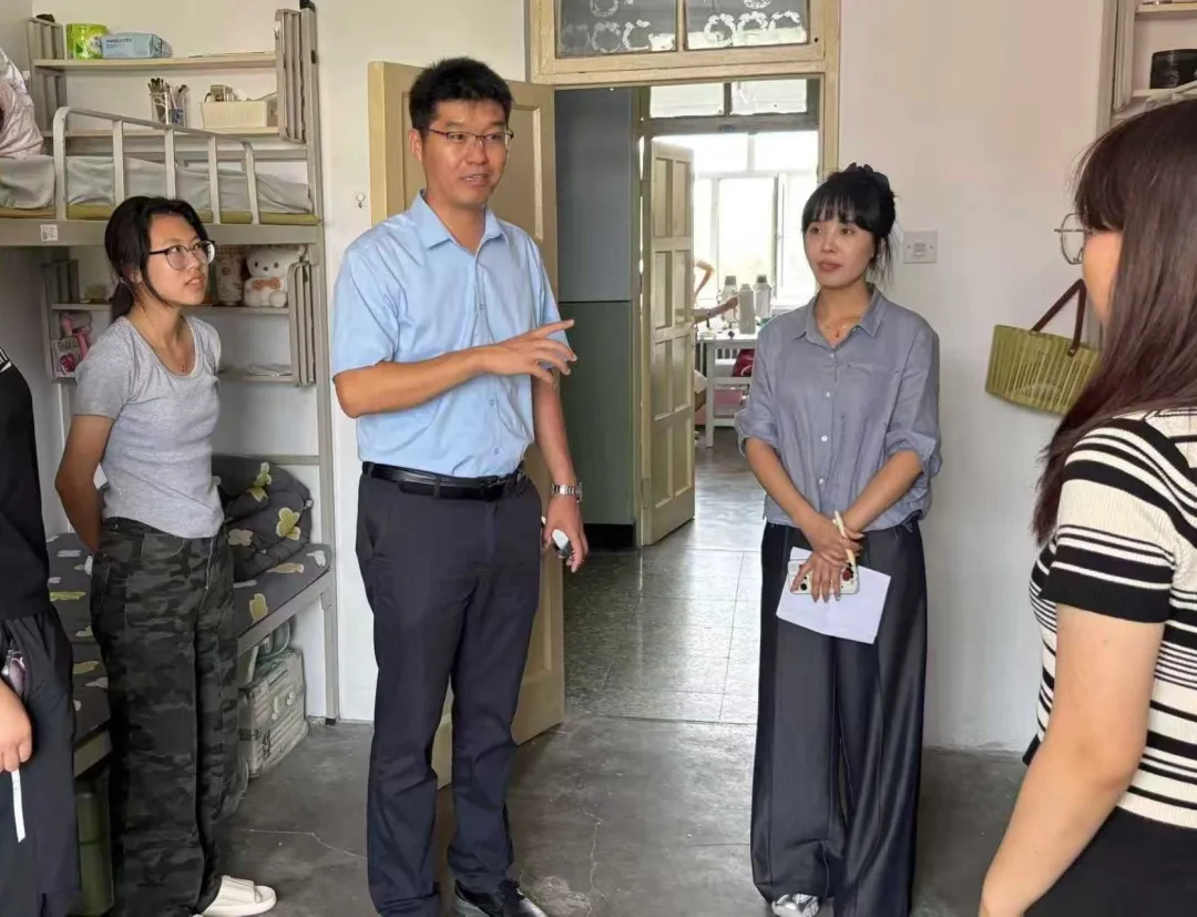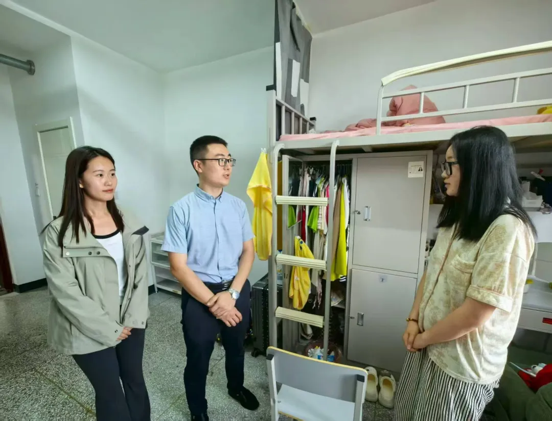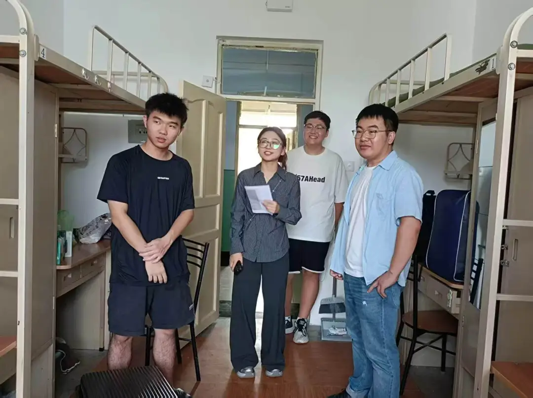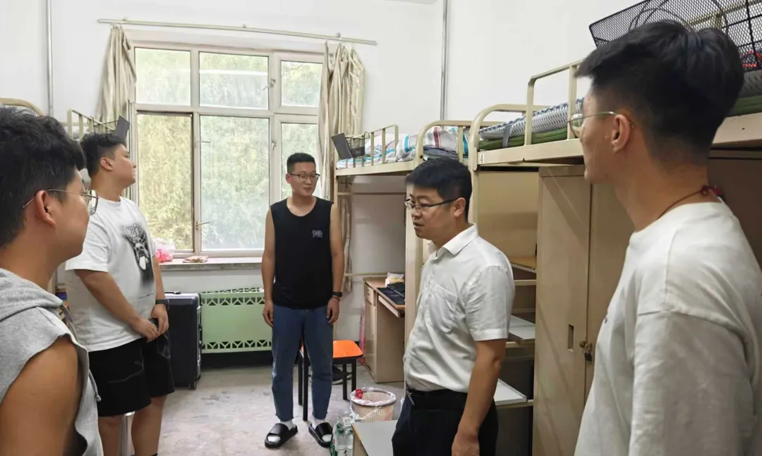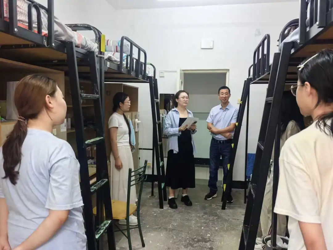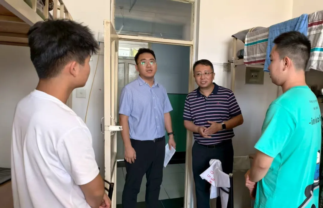 在走访过程中,学院领导老师与新生进行亲切交流,详细询问新生住宿、饮食习惯及适应情况,并送上暖心问候。面对新同学们在生活以及学习方面的疑问进行一一解答,并强调同学们要增强安全意识,养成良好的卫生习惯和集体意识,共筑文明卫生的温馨寝室。