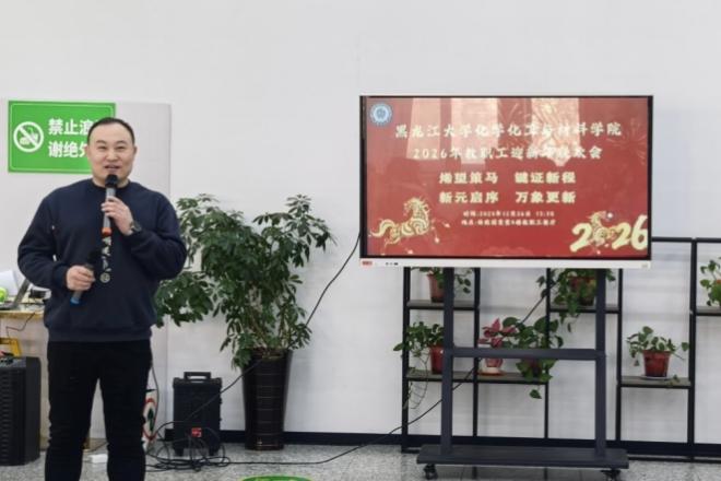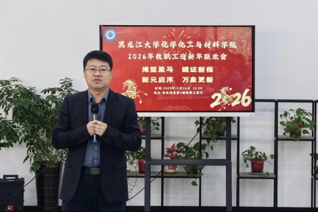 烯望策马,键证新程,新元启序,万象更新。为共庆元旦佳节,营造喜庆祥和、团结奋进的氛围,进一步激励全体教职员工以更充沛的活力与更高的热忱迎接新一年的工作挑战,化学化工与材料学院于2025年12月26日下午13:30在格致园食堂4楼教职工餐厅举办迎新年联欢会,本次活动由学院工会副主席、办公室主任王岩主持,学院全体教职员工欢聚一堂,喜迎新年。