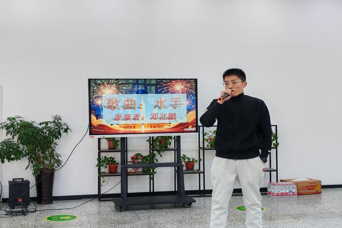 活动开篇由学院教师邓兆鹏倾情献唱歌曲《水手》,激昂的旋律唱出了不畏艰难、奋勇向前的拼搏精神,同时也体现了我院科研人在学术道路上乘风破浪、勇攀高峰的攻坚探索精神。随后,学院教师代表带来诗朗诵《新年送祝福》,深沉而坚定的语言,深情诠释了学院深耕科研、追求卓越的精神内核,字里行间满是对科研事业的执着与坚守,展现了学院浓厚的科研底蕴与使命担当。