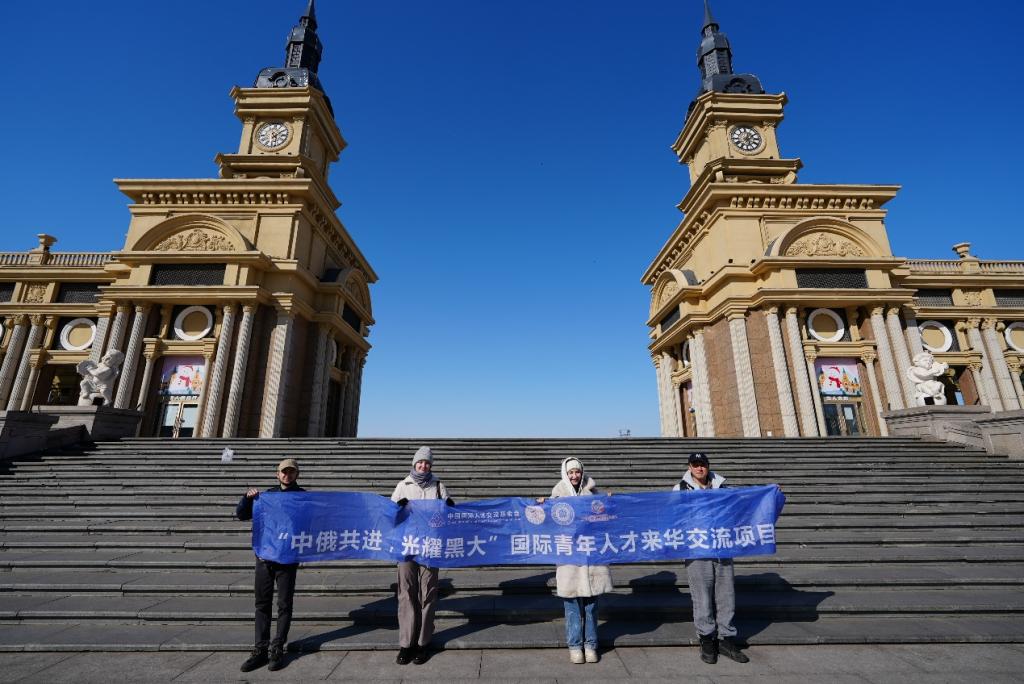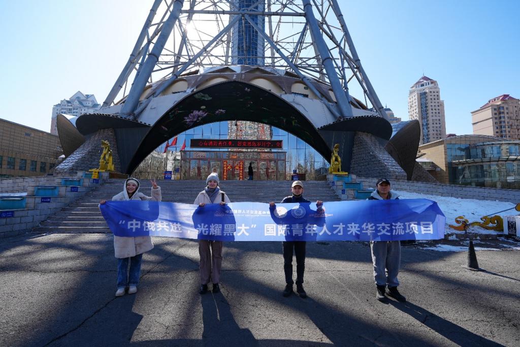上午时分,阳光穿透薄雾,三位来自俄罗斯科学院喀山科学中心的青年学者—卡米勒·迪纳罗维奇·艾哈迈德加列耶夫、瓦列里娅·阿纳托利耶夫娜·亚赫娅、达丽娅·伊万诺夫娜·沙姆申娜,与学院结对教师陈硕副教授一同抵达哈尔滨地标性建筑—龙塔。在181米高的云端观景台上,学者们纷纷拿出手机,记录下这座城市在冬末春初的独特魅力:纵横交错的街道、若隐若现的松花江以及错落有致的建筑群。得知哈尔滨因其对俄合作历史而被誉为“东方莫斯科”时,青年学者们频频点头,对即将在此开展的一个月联合研究充满了期待。
