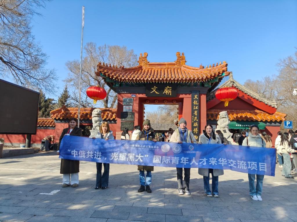 三月暖阳如约而至,洒满大地,消融残雪,万物焕发生机。为进一步深化中俄青年学术交流、厚植两国人文友谊,搭建跨国界、跨文化的科研合作与心灵互通桥梁,2026年3月14日,在黑龙江大学化学化工与材料学院的精心组织下,参与“中俄共进,光耀黑大”国际青年人才来华交流项目(CEP)的三位俄罗斯青年学者,与学院青年学者携手同行,漫步中央大街,沉浸式感受冰城独特风情;探访哈尔滨文庙,深入体悟中华优秀传统文化与城市人文底蕴,在行走与交流中增进理解、凝聚共识、共筑中俄青年友好未来。