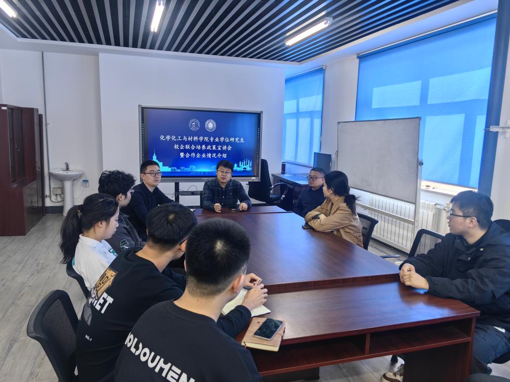 为深化产学研融合,突出研究生分类培养特色,提升专业学位硕士研究生培养质量,化学化工与材料学院于3月31日上午9点在综合实训楼612会议室举办专硕校企联合培养政策宣讲会。会议邀请学院党委书记徐英明主讲,副院长王巍、副院长曲阳及化学工程和资源与环境学位点部分硕士研究生参加会议。