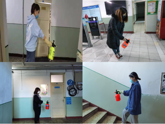 在每日三次的消杀活动中,我院学生志愿者在公寓辅导员的领导下凝心聚力地将消杀工作落到实处,严格按照卫生管理的标准规范,合理分工、配比消毒液、佩戴口罩、手拿喷壶对各个公共区进行了全面细致的消杀作业,确保不留死角,全方位覆盖,保证走廊、楼梯间、洗漱间等公共区都得到了有效的卫生消杀,有效阻隔了病毒的传播,切实保障了同学们的健康安全。