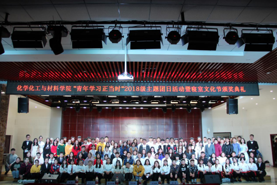 为了深入学习党的十九大精神,响应习近平总书记对青年人的要求和期望,引导广大青年学生在努力学习的同时,构建互爱互助的良好寝室环境,化学化工与材料学院积极响应校团委的号召,举办了“青年学习正当时”2018级主题团日活动暨寝室文化节颁奖典礼。此次活动由化学化工与材料学院团委和学生会共同组织,2018级14个团支部全部参与其中。