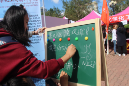 迎新工作现场,学院准备了小黑板,2018级的新生和家长纷纷在黑板上写下他们对黑大、对化院、对未来想说的话。新生们大多写下要好好学习,成为更优秀的自己;新生家长们则写下为新生加油,支持他们去实现梦想的话语。四年时间说长不长,说短不短,愿2018级的新同学都可以在未来的四年收获一个更加优异的自己。