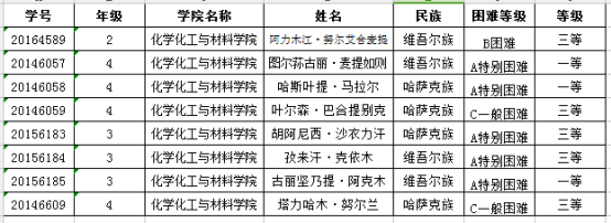 化学化工与材料学院2017-2018学年新疆籍少数民族家庭经济困难学生助学金评定结果公示