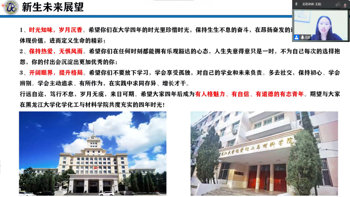 最后,两位老师为2022级全体新生送上“行远自迩,笃行不怠,岁月无虞,来日可期”的寄语,希望同学们尽快适应大学生活,明确目标,开阔视野,做好学习规划和职业规划,并提升自身的核心竞争力,提高自我认识能力、自我计划能力、自我控制能力和自我激励能力。汲取丰富知识,增强自身本领,在丰富的大学生活中迎接更好的自己。