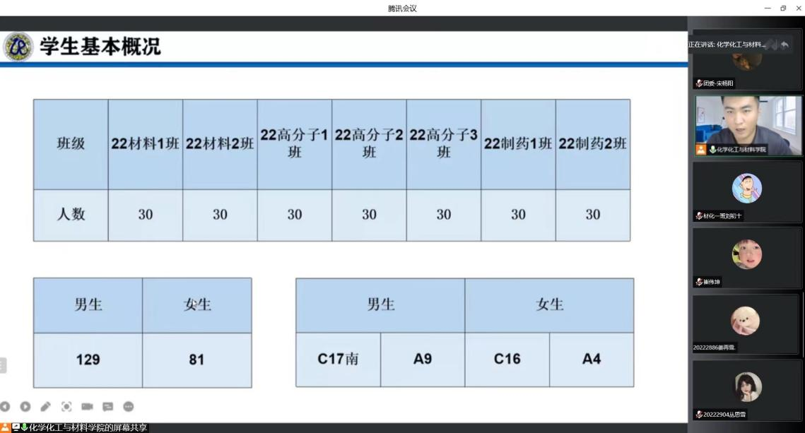 为使2022级新生更快融入大学生活,帮助新生明确校规校纪,培养良好的学习和生活习惯,化学化工与材料学院于2022年8月28日晚18:00召开2022级新生年级大会。本次会议由2022级辅导员刘京强和王欣主持,化学化工与材料学院新生班主任及全体新生参加此次会议。