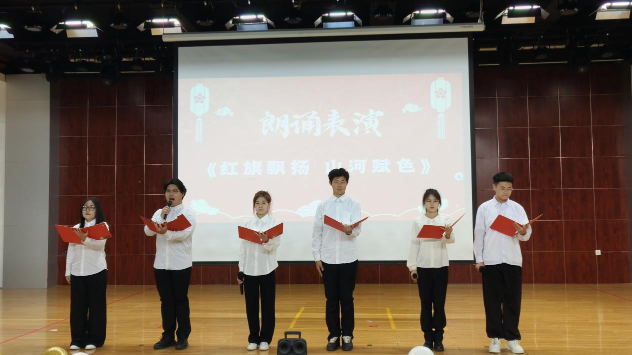 朗诵《红旗飘扬,山河赋色》激情满怀,他们用气势磅礴的声音传递着作为新时代青年的骄傲与担当,手擎红旗为祖国的山河描绘更加绚丽的色彩。
