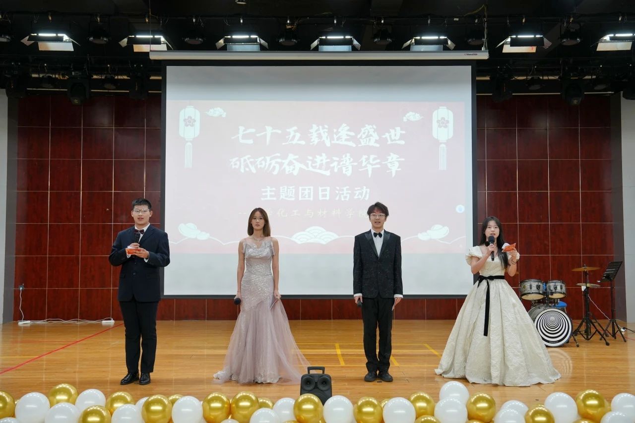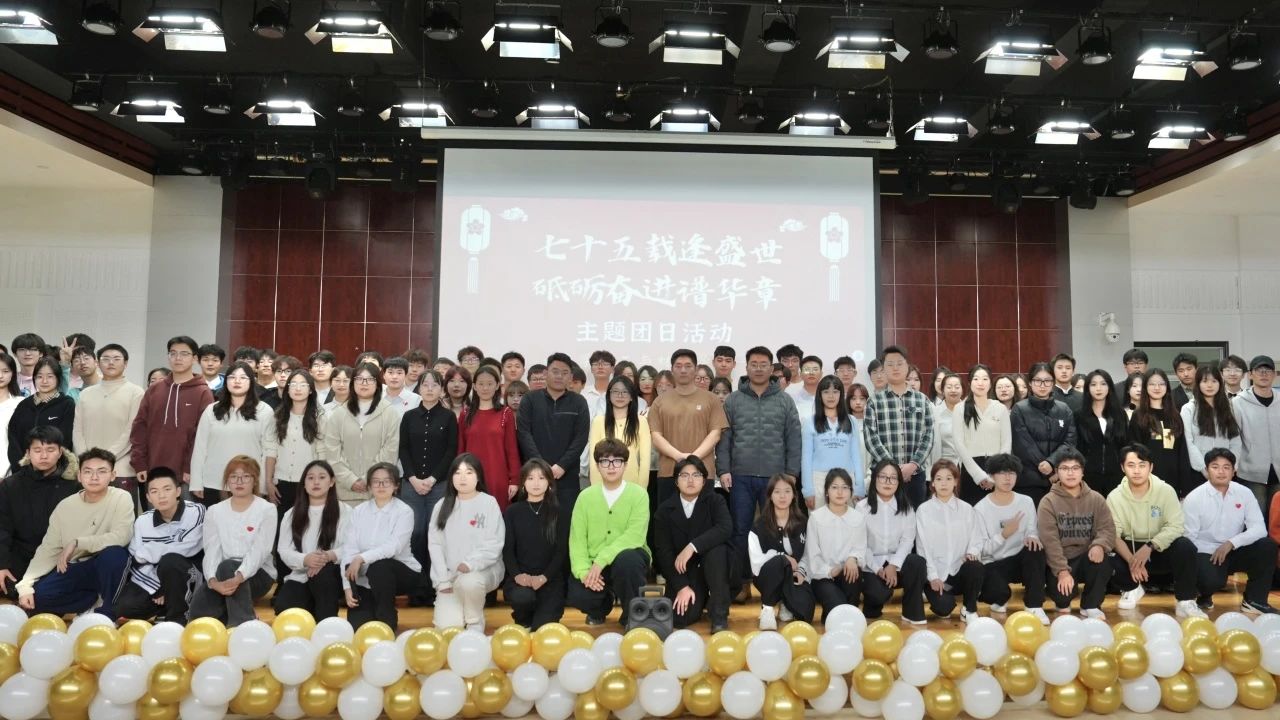 为庆祝中华人民共和国成立七十五周年,全面贯彻党的二十届三中全会精神,进一步推进落实习近平总书记对青年学子的重要寄语精神,同时响应我校团委关于举办2024年度团日活动的号召要求,团结青年群众,做到对我校学子学习,课余生活等全方面关照,切实提升学生综合素质,化学化工与材料学院于2024年11月25日晚六点半在大学生活动中心多功能厅开展“七十五载逢盛世,砥砺奋进谱华章”主题团日活动。