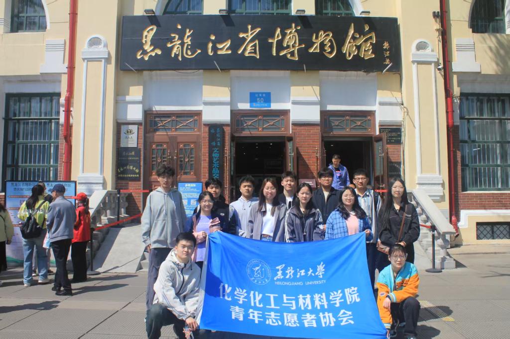 在黑龙江这片广袤的土地上,黑龙江省博物馆宛如一座璀璨的文化灯塔,静静伫立,诉说着岁月的故事,照亮着人们探寻历史的道路。而在这座知识殿堂里,有这样一群充满活力与热情的青年志愿者,他们用自己的行动诠释着奉献精神,为博物馆增添了一抹温暖而独特的色彩,注入了一股崭新而洋溢的活力。化学化工与材料学院青年志愿者协会于2025年5月10日再次前往黑龙江省博物馆,志愿者们化身文化使者,开启了一场穿越时空的志愿之旅。
