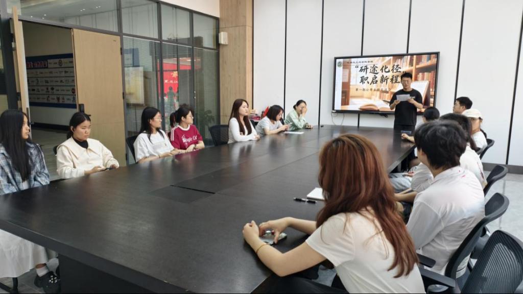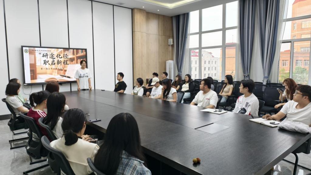 为深化本硕学生职业发展联动,发挥优秀毕业生榜样引领作用,搭建公考经验共享与能力提升平台,6月11日18时,化学化工与材料学院在B区大学生活动中心428成功举办“研途化径,职启新程”第一期公考主题交流会。学院研究生会相关负责人、2025届优秀毕业生代表及各年级学生代表齐聚一堂,共同参与这场职业规划交流活动。本次交流会由学院研究生会执行主席林邵鹏主持。