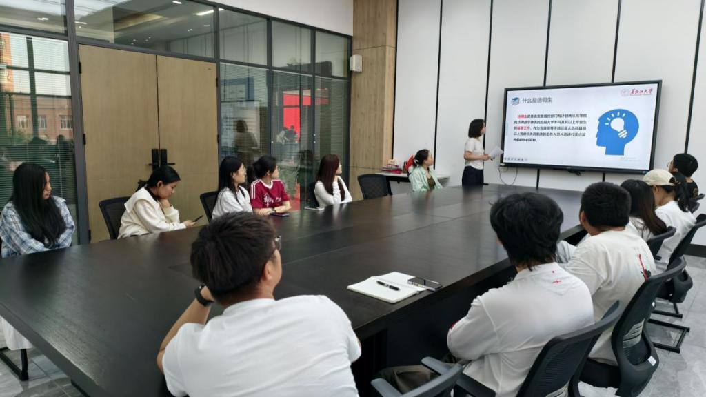 第二位分享嘉宾是2022级资源与环境专业陈蔚紫学姐,她以“选调生备考经验分享”为主题,从选调生考试解读、备考经验分享、时间管理与心态调整、常见问题答疑四个方面展开讲解。她结合自身上岸经历,强调了备考过程中良好心态的重要性,还传授了实用小技巧,让在场同学对选调生考试有了更清晰的认识。