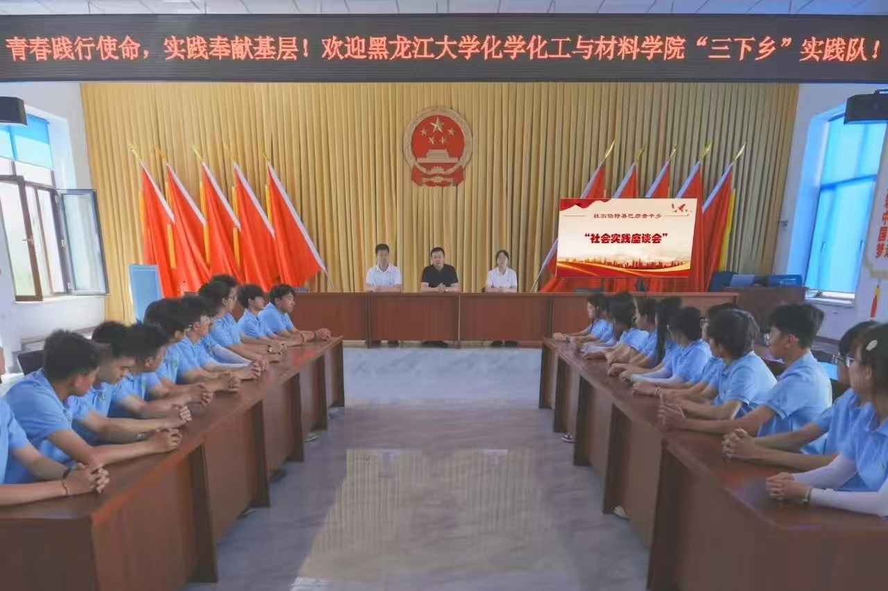油田沃土青春行,实践报国正当时。为深入学习贯彻习近平总书记关于“三农”工作的重要论述,持续深化乡村振兴青春建功行动。2025年7月19日,黑龙江大学化学化工与材料学院暑期“三下乡”社会实践队抵达杜尔伯特蒙古族自治县巴彦查干乡永珍王府新村开展社会实践座谈会。巴彦查干乡村委会刘主任、学院社会实践队指导教师邢宇佳、贺俊杰及全体实践队员参加。