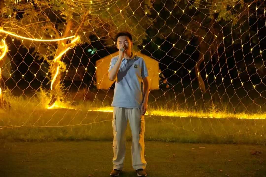 实践指导老师贺俊杰演唱歌曲《天后》, 将本次晚会推向最高潮,歌曲展现实践队在基层实践中,始终怀揣着服务群众的热忱,象征着青春力量与团结一心、共同助力乡村振兴的理念。