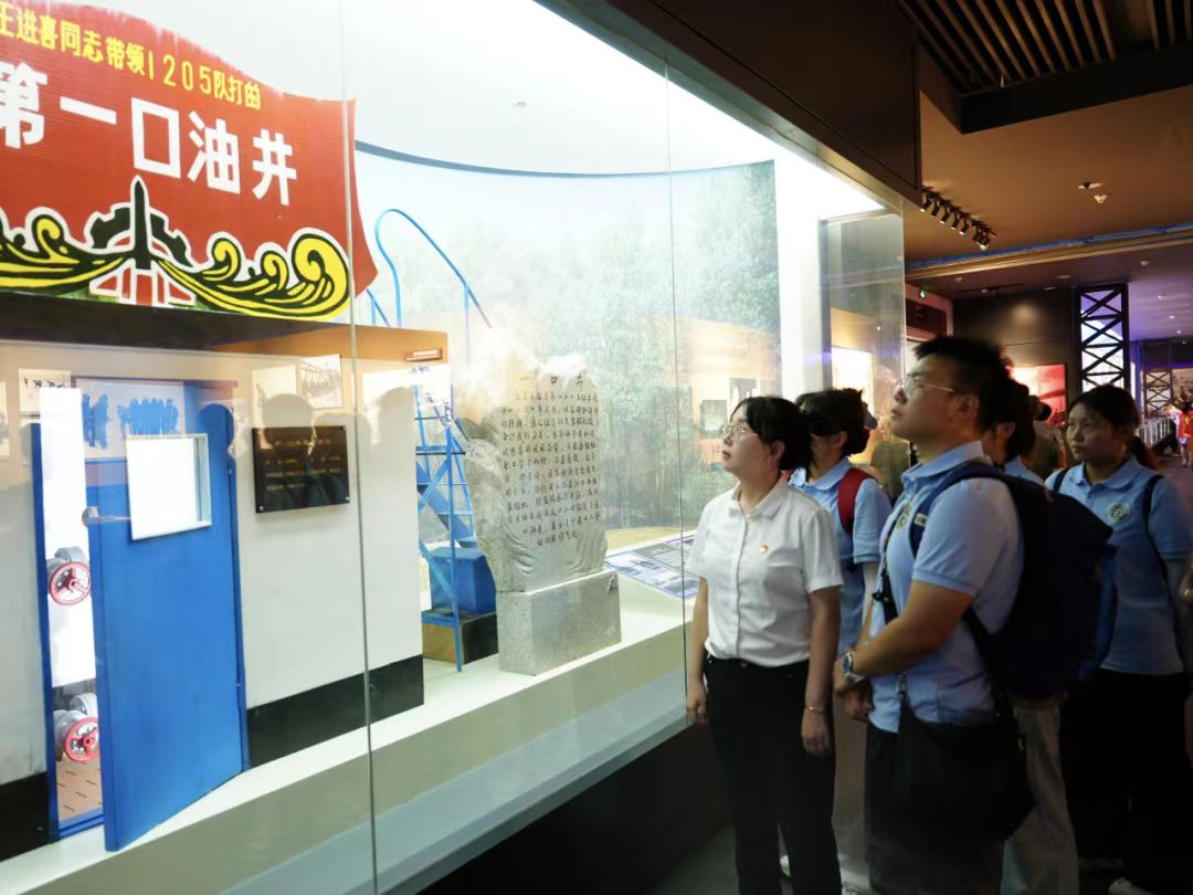 铁人王进喜纪念馆里,带补丁的工装裤与“跳进泥浆池”的雕塑交相辉映,“宁肯少活二十年,拼命也要拿下大油田”的誓言仿佛穿透时空;油田历史陈列馆中,泛黄的勘探图纸、老旧的抽油机模型,静静铺展着从荒原拓荒到年产千万吨的奋斗长卷;石油馆内,智能开采模拟系统则让工业遗产与现代科技碰撞出别样火花。从铁人精神的震撼到产业迭代的感慨,队员们一路触摸着“爱国、创业、求实、奉献”的精神脉络,在历史与现实的交织中,读懂这份传承在新时代的厚重分量。