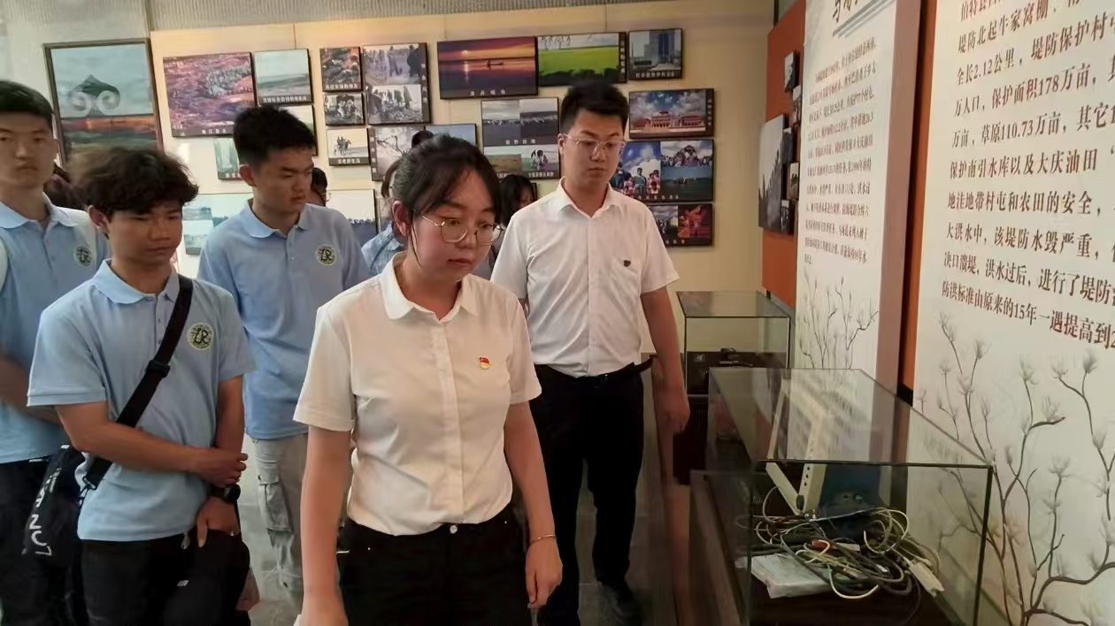 实践队的脚步穿梭于历史与文化之间,在不同的场景中收获着同样深刻的感动。抗洪纪念馆内,1998年的抗洪记忆通过照片、实物与影像缓缓铺展,斑驳的日记、抢险的瞬间、《生命堤坝》的镜头,让“万众一心、众志成城”的精神变得可触可感,队员们在震撼中读懂危难时刻的团结伟力,暗下决心以顽强拼搏的担当奔赴新时代。