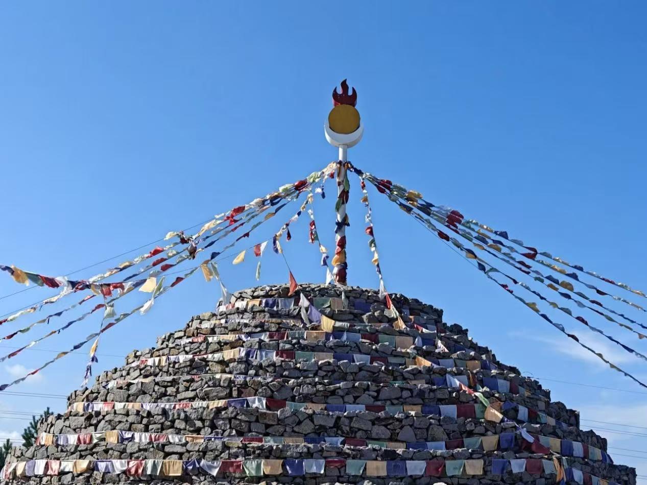 转身走进杜尔伯特王府民俗博物馆,古朴建筑中的复原场景与文物静静诉说着蒙古族的过往,从游牧生活的智慧到王府起居的细节,每一件展品都凝结着文明的印记。再至巴彦查干敖包前,垒石铭刻先民智慧,哈达缠绕千年礼赞,队员们在此与历史对话,触摸民族文化的深厚根脉。