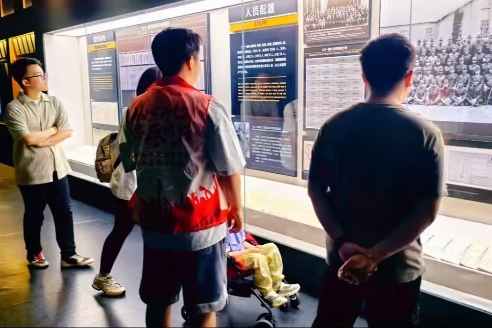 在观展途中,志愿者们流露着肃穆的探究姿态与深刻的历史共情。他们恪守安静的参观秩序,时而俯身细察,时而驻足凝思。面对满含血泪的历史遗存,志愿者们眼神沉重;翻阅文献档案时,不时用笔标注关键内容;碰到存疑的历史细节,主动与同伴展开讨论。在休息区域,大家还围坐在一起交流感悟,分享各自触动最深的展品故事,进一步加深对这段历史的认知与铭记。