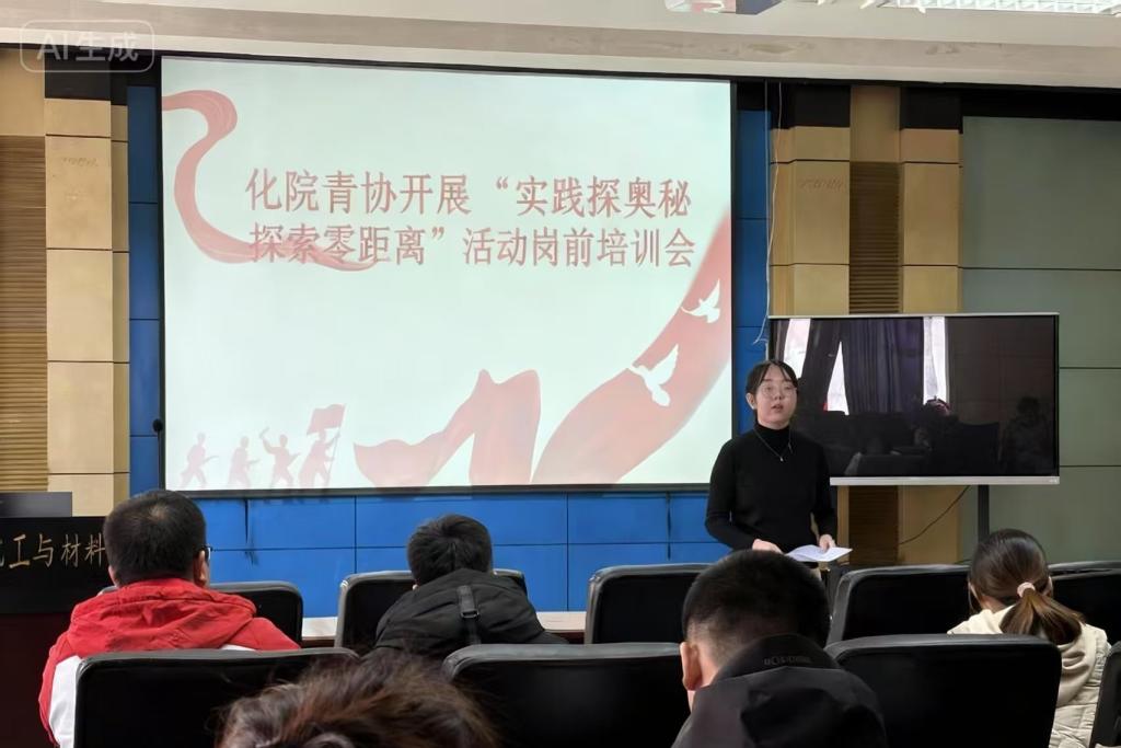 “实践探奥秘 探索零距离”不仅是一场活动主题,更是青年学子践行科学精神的生动载体。本次岗前培训既是实验探索活动的起点,更是科学梦想启航的号角。学院希望通过此次活动,让更多学生以实验为桥梁,启发高中学生对化学的热爱,在探索奥秘中收获成长与启发,让科学的种子播撒在校园的每个角落,共同谱写“探索与创新”的青春篇章。(化学化工与材料学院供稿)