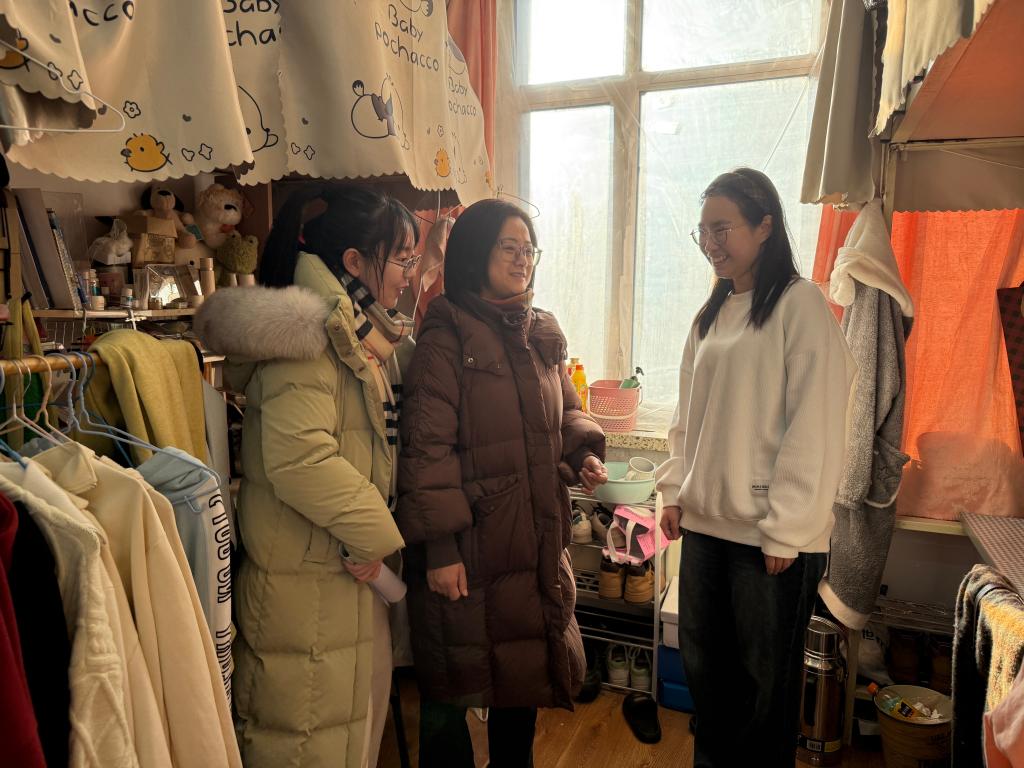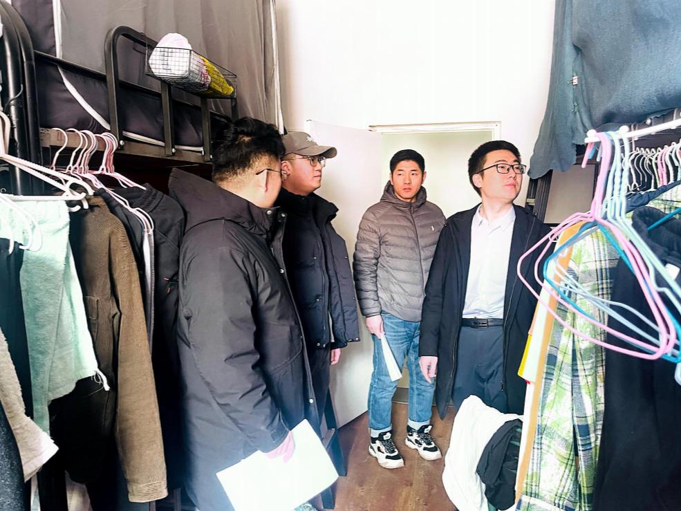 本次检查重点围绕宿舍用电安全、环境卫生等关键环节开展细致排查。随行人员逐一核查电器使用是否合规、电线及插排敷设是否规范安全,反复叮嘱同学们严格恪守宿舍安全管理规定,坚决杜绝违规电器使用,切实落实人离电断的安全要求。环境卫生方面,老师们详细询问宿舍日常保洁与通风情况,叮嘱同学们养成良好卫生习惯,及时清理生活垃圾,保持室内整洁通透、空气流通,共同营造健康舒适的住宿环境。