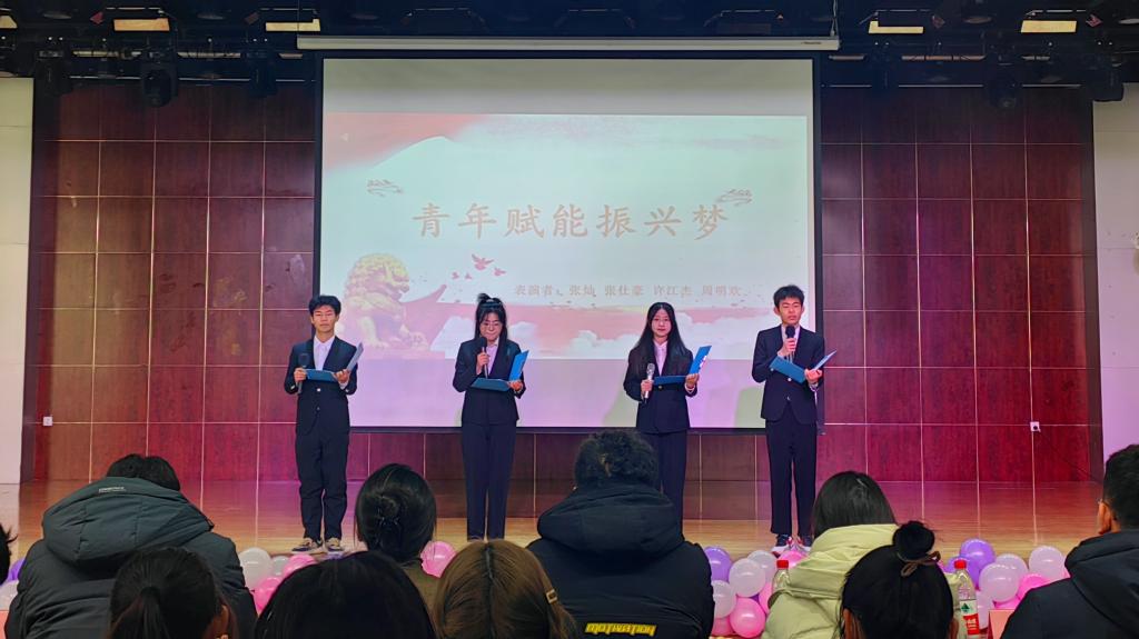 朗诵《青年赋能振兴梦》展现出学院三下乡期间队员们身体力行为振兴乡村所做的努力和贡献,铿锵有力的话语展示出身为新时代的青年担当。