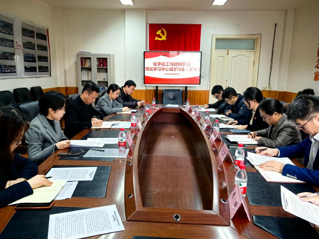 10月25日上午,化学化工与材料学院党委召开理论学习中心组(扩大)集体学习会,学院理论学习中心组成员、党委委员、教工党支部书记参加学习会,校党委宣传部副部长谢德宝、意识形态办公室主任邵明琛列席旁听指导,会议由学院党委书记秦川丽主持。