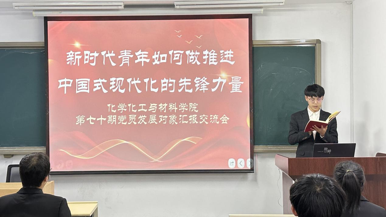 为深入学习贯彻习近平新时代中国特色社会主义思想,全面贯彻落实党的二十届三中全会精神,按照学校党委关于举办黑龙江大学第七十期党员发展对象培训暨学习贯彻党的二十届三中全会精神专题培训班的通知要求,化学化工与材料学院于2024年10月31日至11月6日组织开展第七十期党员发展对象培训班暨学习贯彻党的二十届三中全会精神专题培训。