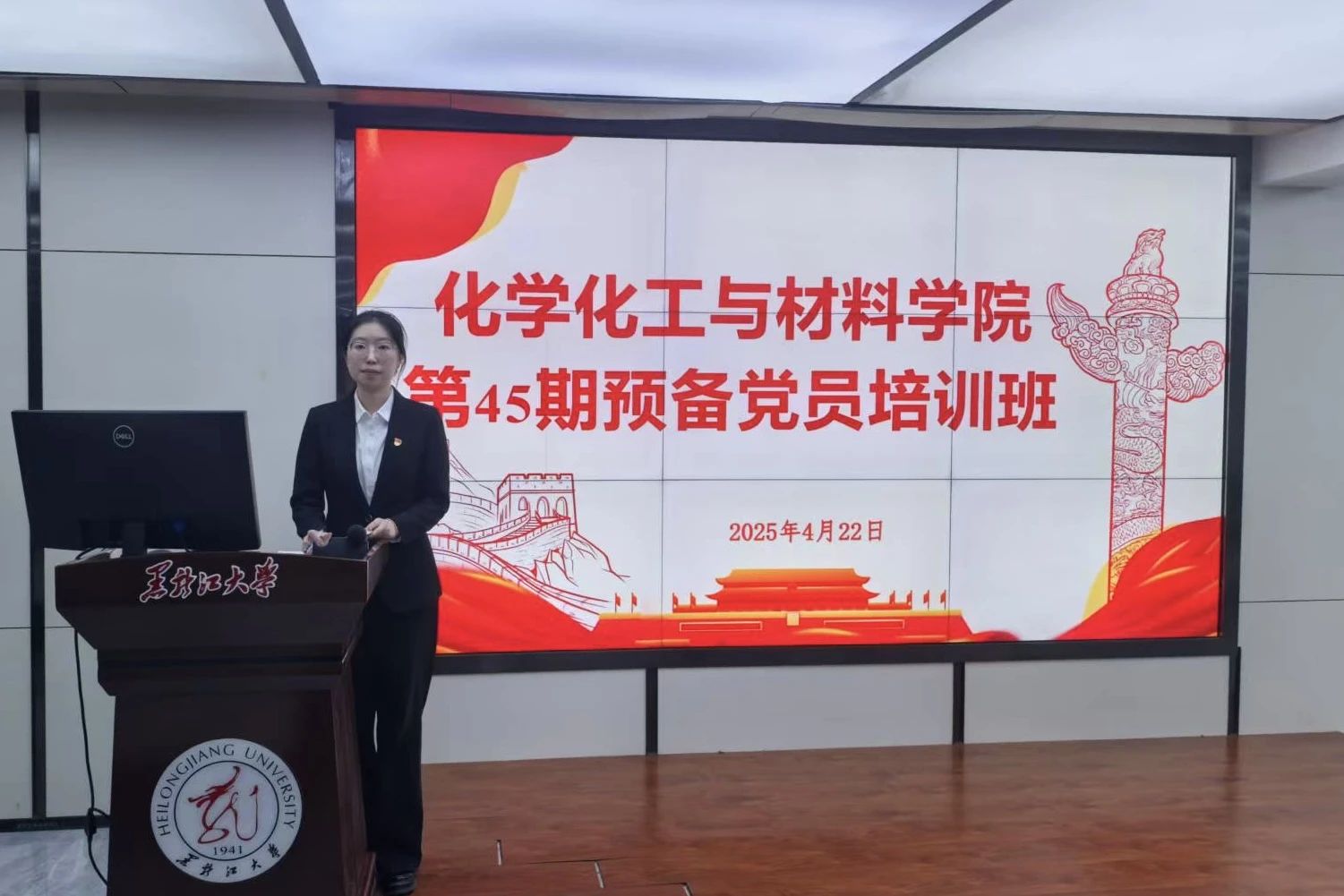为进一步贯彻落实党的二十届三中全会精神,学习领会习近平总书记在两会期间的重要精神,深入贯彻中央八项规定及其细则精神,扎实推进学生党员先锋工程,引导学生党员进一步发挥先锋模范作用,激发爱党、爱国、爱校情怀,化学化工与材料学院于2025年4月22日在大学生活动中心4楼招聘厅组织开展第45期预备党员培训,第45期学生预备党员培训班全体同学参加。