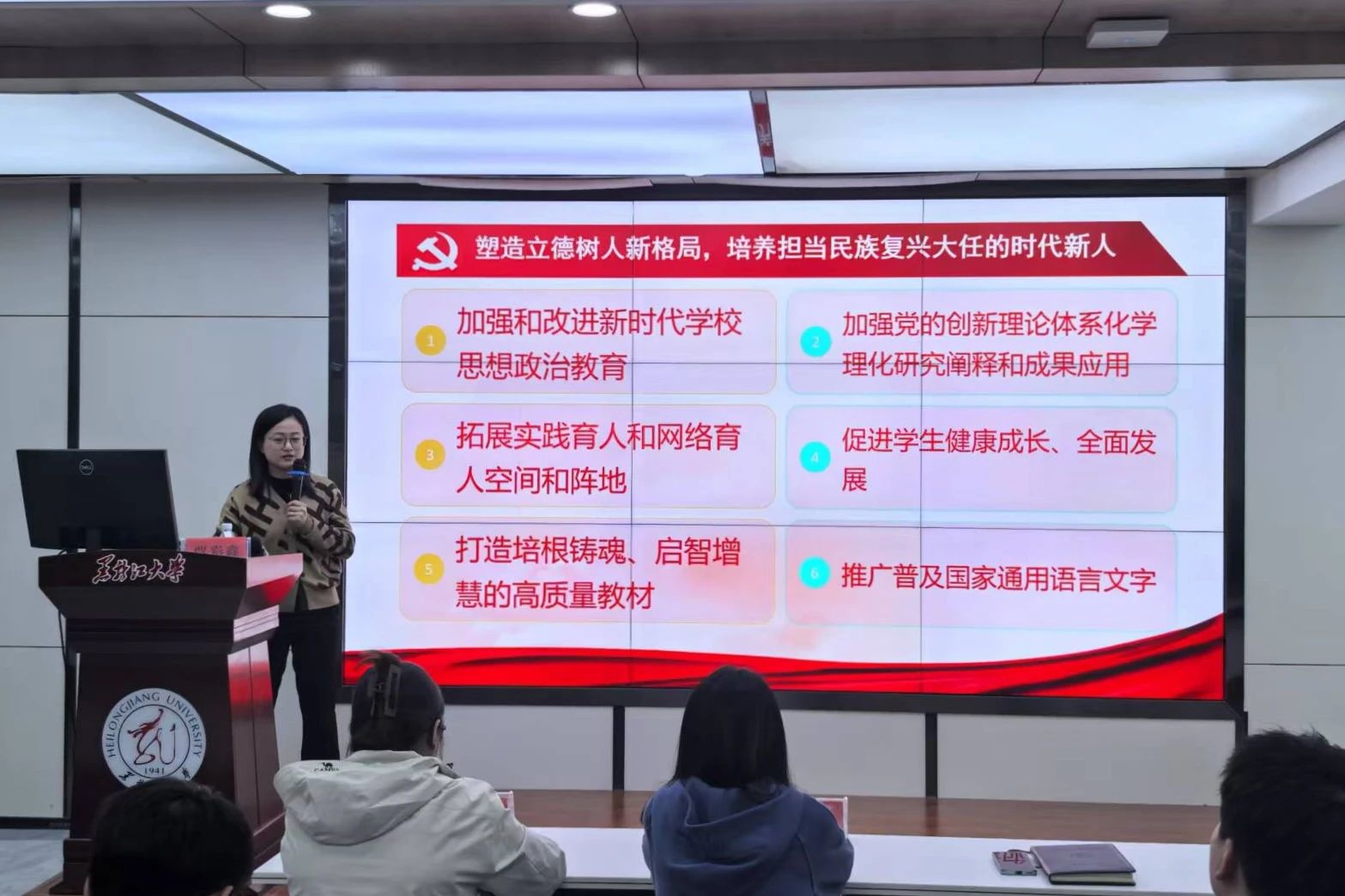培训首课由学院党委副书记贾彩鑫就“习近平总书记关于教育的重要论述和教育强国建设规划纲要的重要性”进行重要讲话。首先贾彩鑫老师提出青年党员要明确认识习近平总书记关于育人事业建设要坚持党对教育的全面领导、把立德树人作为根本任务、优先发展教育事业、坚持社会主义办学方向、扎根中国大地办教育、以人民为中心发展教育、深化教育改革创新、将服务中华民族伟大复兴作为重要使命、把教师队伍建设作为基础性工作的九大核心原则。并从中提取教育为国育才、扎根中国、服务全局的精神内涵。随后,贾彩鑫老师概述了教育强国建设规划纲要的长远目标和阶段性成果。她强调全体学生党员应积极响应国家号召,将“塑造立德树人新格局” 作为首要任务以推动学院高质量发展,思想上紧跟党的步伐,以一言一行彰显党员的先进性,带动身边同学厚植爱党爱国爱社会主义的情感,以实际行动展现化院学子的风采。