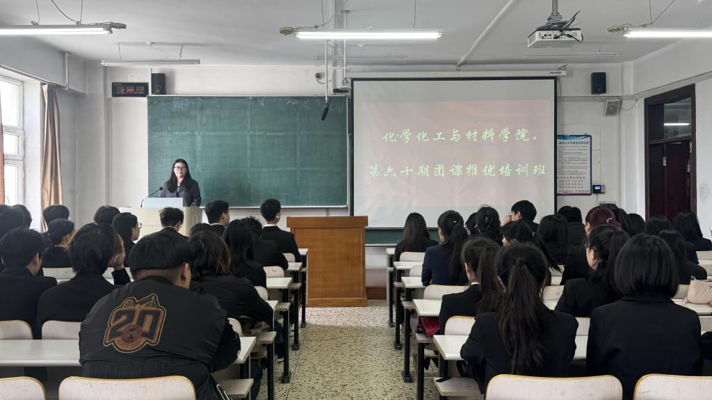 青春在淬炼中绽放光芒,人生在攀登中书写华章。为了加强对青年团员的思想引领与政治锤炼,引领青年准确理解和把握中国式现代化的核心内涵,凝聚青春力量,激励广大团员青年积极向党组织靠拢,化学化工与材料学院于2025年10月11日在汇文楼646室召开第六十期共青团“推优”动员大会暨培训大会。本次会议由学院团委学生副书记时圣佶主持,学院团委副书记史岚鑫主讲,本期培训班全体成员参加会议。