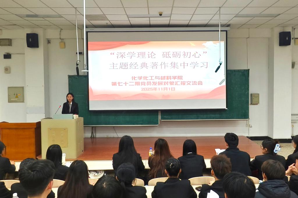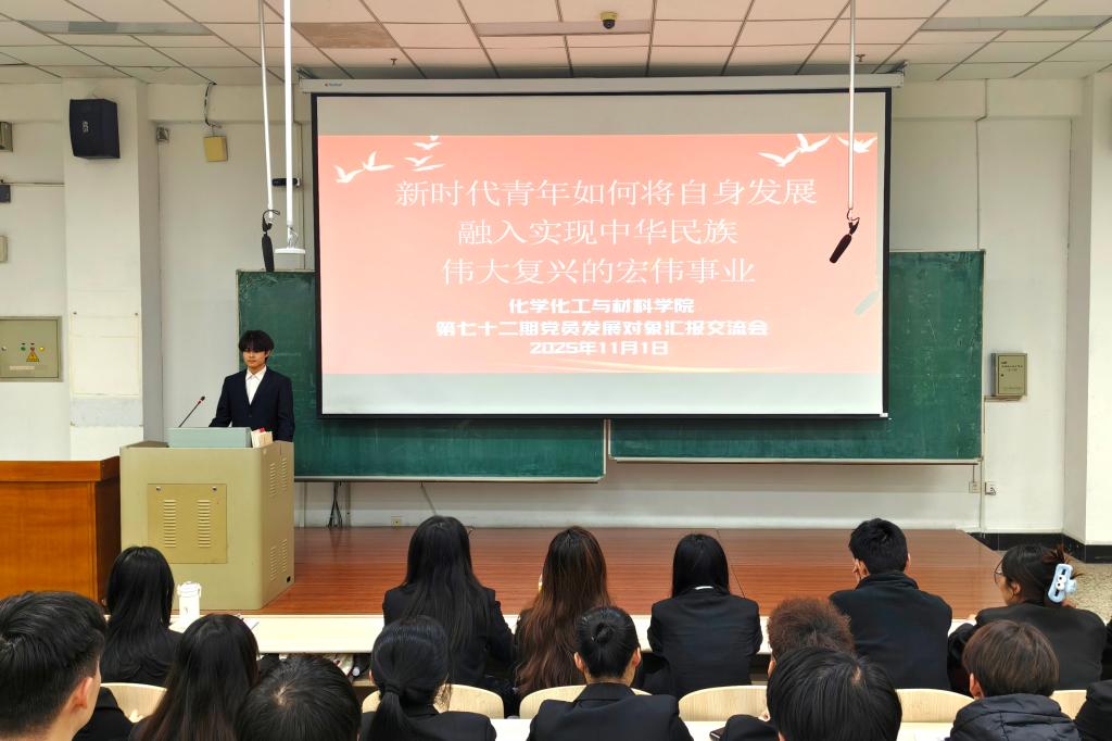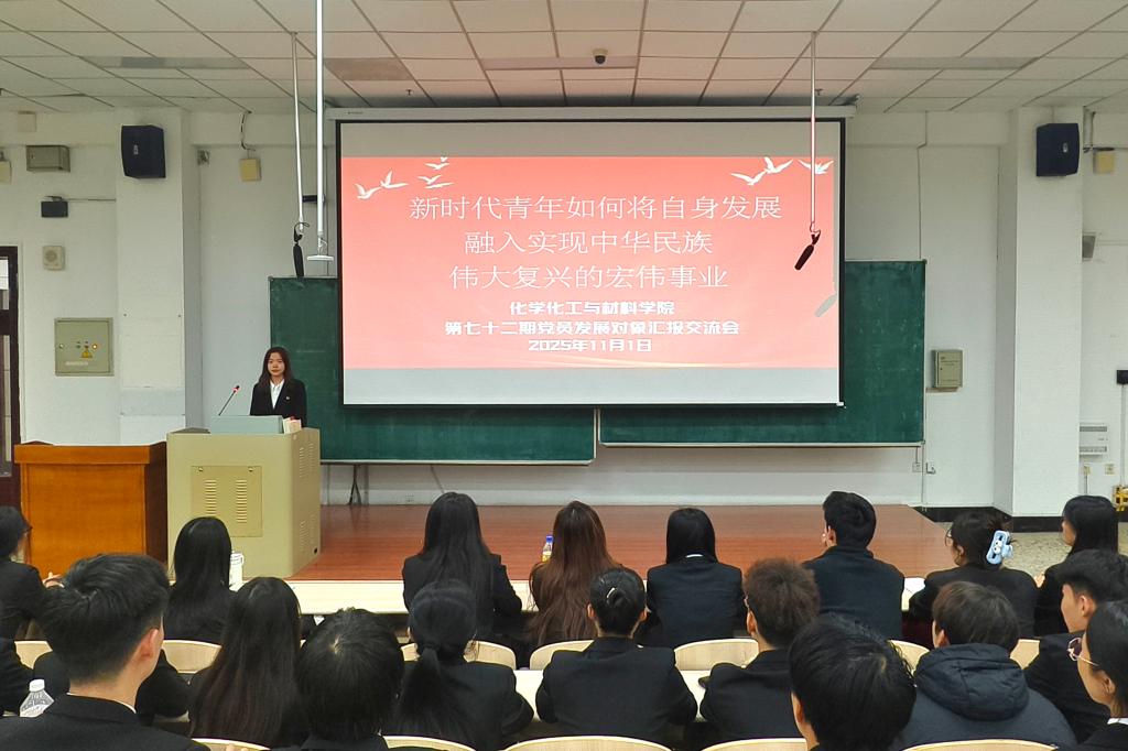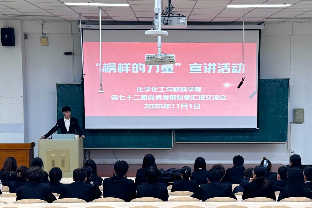 按照学校党委关于第七十二期党员发展对象培训班暨学习贯彻党的二十届四中全会精神专题培训班的通知要求,进一步提升发展对象的政治理论水平与党性修养,化学化工与材料学院于10月31日至11月2日期间组织开展第七十二期党员发展对象系列培训活动。