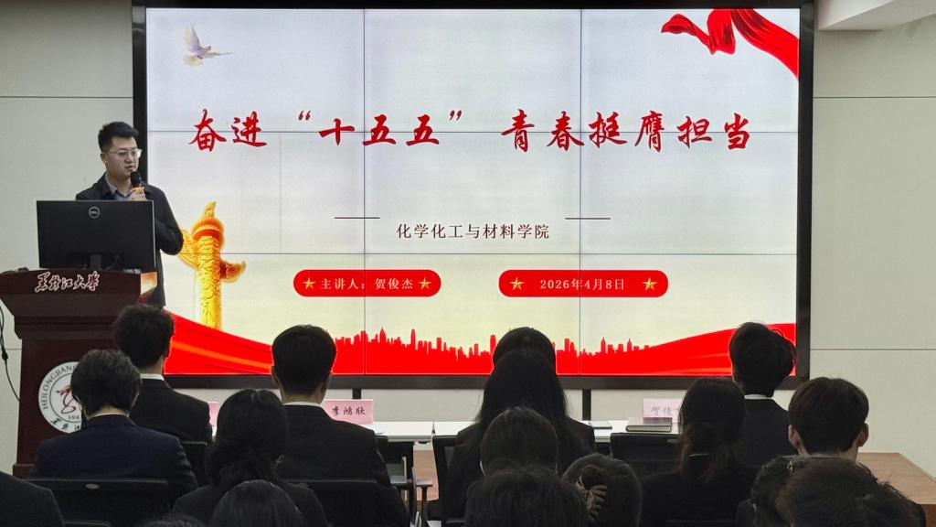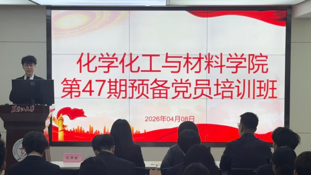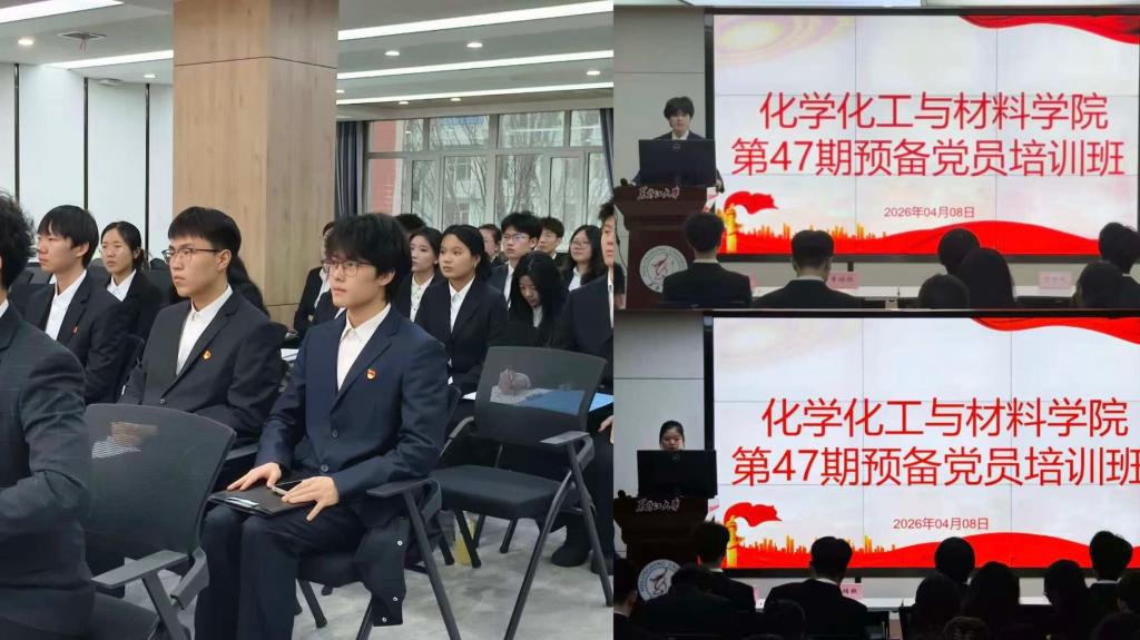 为全面贯彻习近平新时代中国特色社会主义思想,扎实推进学生党员先锋工程,化学化工与材料学院于2026年4月8日在大学生活动中心4楼招聘厅,开展第47期预备党员培训。本次培训由学院党委副书记贾彩鑫、团委书记李鸿欣、团委副书记贺俊杰主讲,团委学生副书记闫泽铭主持会议,全体学员参与学习。