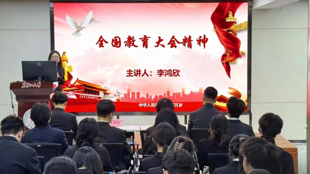 培训第二部分,学院团委书记李鸿欣带领学员深入学习全国教育大会精神,她为学员解读了教育强国战略部署,阐明教育对中国式现代化与民族复兴的重要意义。结合青年党员成长实际,她进一步明确了预备党员培养要求,指出学生党员要以高标准严格要求自己,同时援用榜样事迹,号召学员传承奋斗精神。最后,她寄语青年党员,以实干践行初心,以奋斗回应时代,努力成长为堪当民族复兴重任的先锋力量。