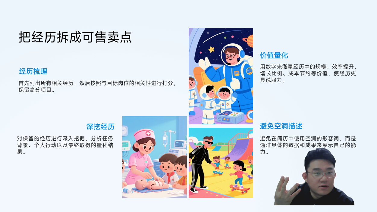王增泽老师特别指出,面对春招节奏快、竞争激烈的特点,一份重点突出、制作精良的简历尤为重要。他鼓励同学们积极参与后续的简历修改环节,并宣布将于1月16日至1月25日期间开放简历提交通道,承诺对每一份简历进行逐一批阅,并给予个性化反馈意见,切实帮助同学们打磨好这块求职“敲门砖”。